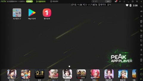 피크 앱플레이어는 지속적인 업데이트를 통해 최적화된 모바일 환경을 제공하고 고객 의견을 적극 반영한 다양한 앱플레이어 기능을 제공하고 있다. 특히 국내외 서비스 되는 구글 플레이 상위 모바일 게임에 대한 최적화된 앱플레이어 기능을 제공하고 원스토어와 전략적 제휴를 통해 특화된 프로모션 및 혜택을 서비스하고 있다.
